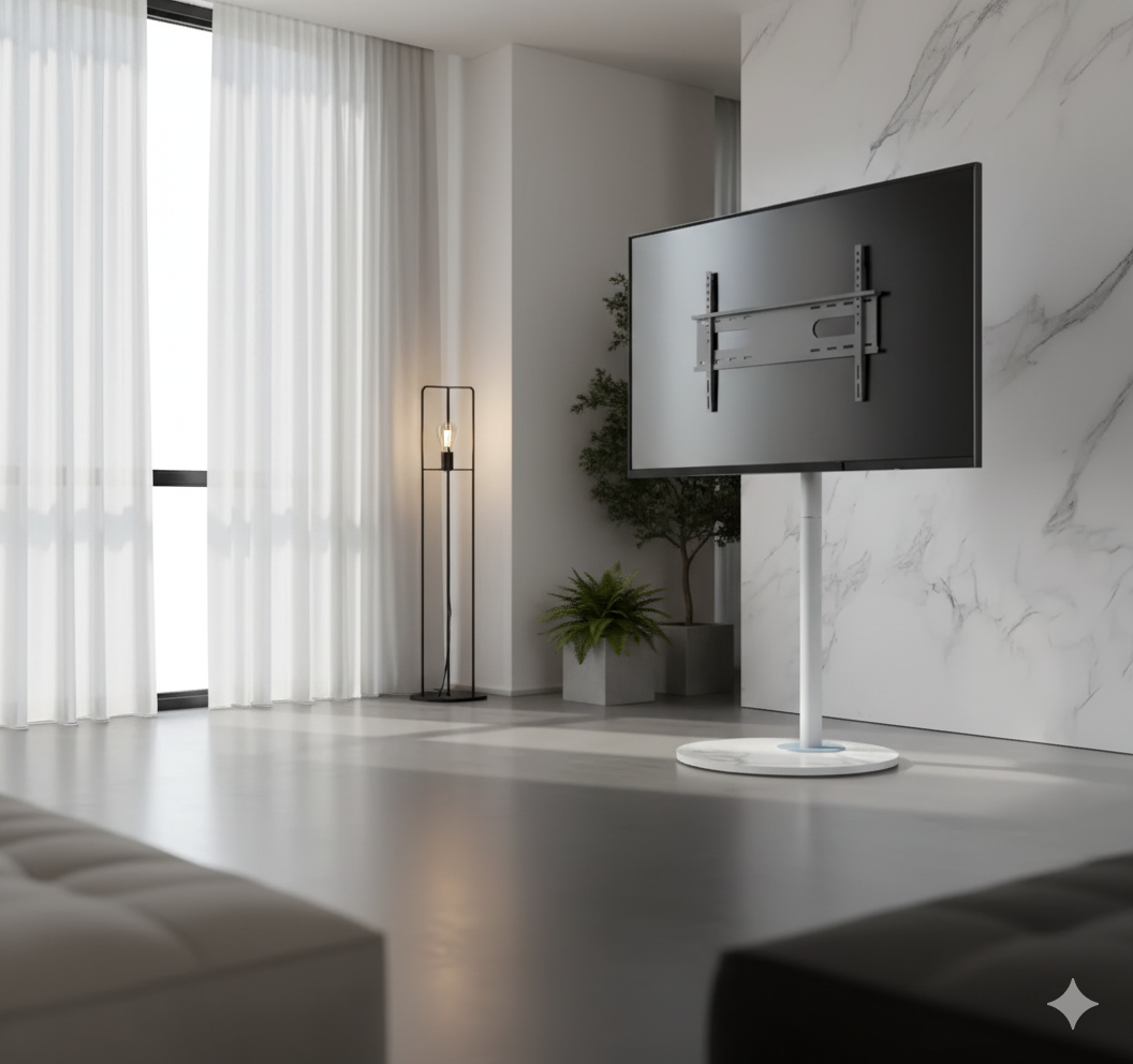 ¿Por qué conformarte con un televisor fijo en una pared? Tu vida es dinámica y tu tecnología debería serlo también. Con nuestro Soporte para TV Minimalista, tienes la libertad de llevar el entretenimiento y las presentaciones a cualquier rincón de tu hogar u oficina.